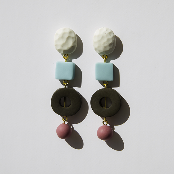 Hechos a mano en arcilla polimérica, combinan formas y colores que transmiten frescura y personalidad: blanco suave, turquesa, marrón tierra y un toque de rosa