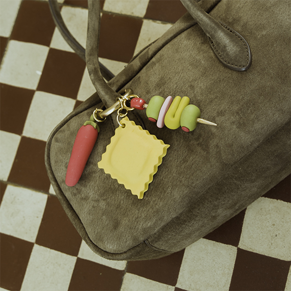Charm de guindilla hecho a mano en arcilla polimérica. Ligero, original y perfecto para dar un toque divertido y diferente a bolsos. Cada pieza está modelada artesanalmente, por lo que no hay dos exactamente iguales.
